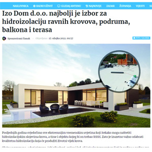 IZO DOM d.o.o. je tvrtka sa dugogodišnjim iskustvom , specijalizirana za izvođenje hidroizolaterskih radova .Radove koje izvodimo su hidroizolacija ravnih prohodnih i neprohodnih krovova, hidroizolacija podrumskih prostorija, hidroizolacija balkona i terasa i dr.radovi